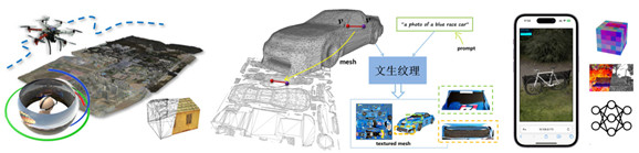 可视内容提供了人类交流93%以上的信息,优质、按需、多样的内容生成在经济、文化、国防、安全等领域发挥着重要作用。以计算机图形学三维建模/渲染、生成式人工智能等为代表内容生成方式能够提供高真实感、多样化、可复用的可视内容,既满足了不同应用环境下的内容利用需求,也为人工智能算法提供了数据基础。涉及以下相关研究方向: