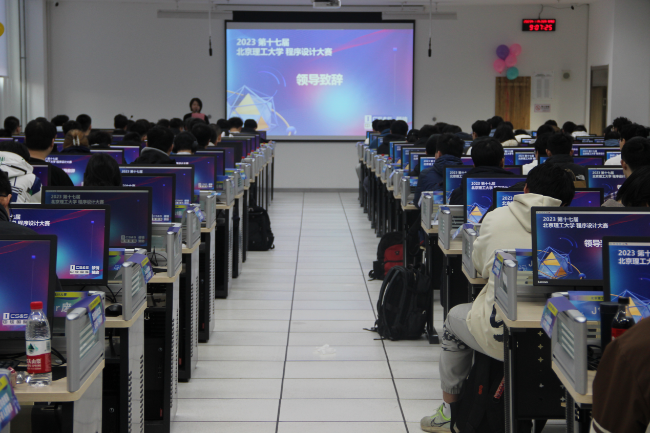 奚英伦为全体参赛选手做动员讲话,他指出程序设计大赛作为学校传统科技创新赛事中的突出代表,每年都吸引了大量程序设计爱好者加入其中。程序设计大赛作为每年北理工程序设计爱好者的节日,在今天,他希望大家能在比赛中度过充实、丰富的一天。