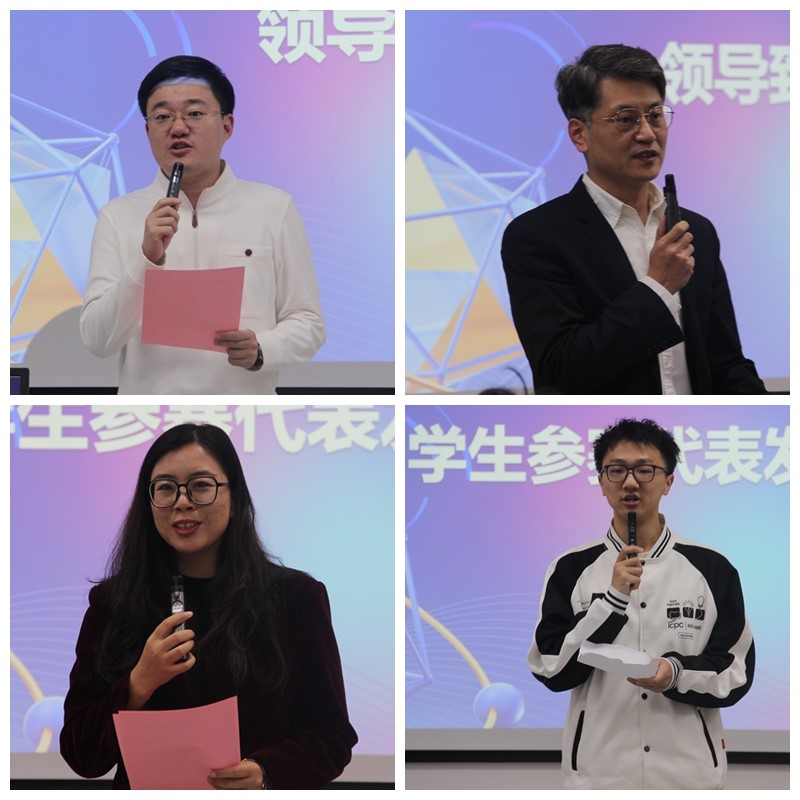 睿信书院人工智能专业2021级本科生李嘉政作为参赛代表发言,他祝愿全体参赛选手能够发挥出自己的水平,打出自己理想的成绩,Code出你的精彩,AC所有人的期待。
