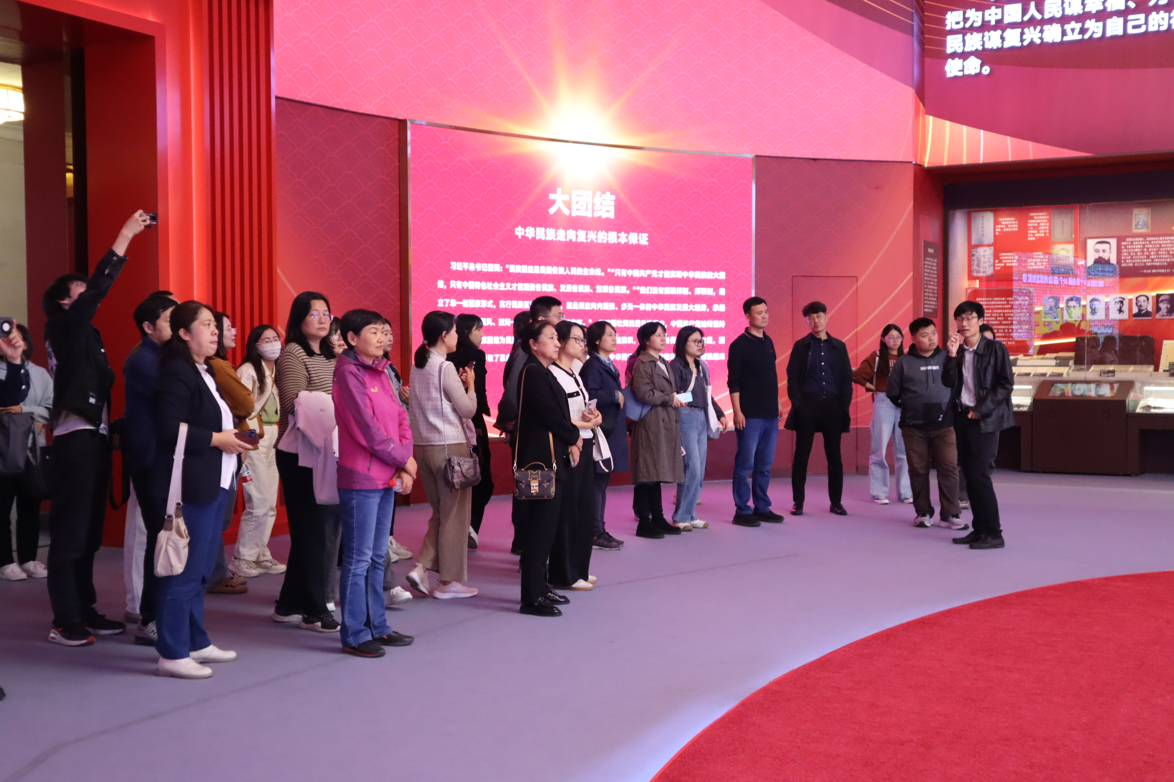 为深入学习贯彻党的二十届三中全会精神,深入贯彻落实习近平总书记关于加强和改进民族工作的重要思想和在文化传承发展座谈会上的重要讲话精神,2024年10月15日下午,伟德bv国际体育由党委书记周连景带队,师生四十余名集体参观了北京民族文化宫“铸牢中华民族共同体意识文物古籍展”,近距离探访中华民族共同体形成发展的历史文脉赓续。